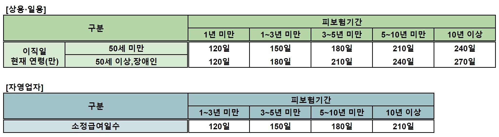실업급여는 수급자의 피보험기간과 연령에 따라 지급이 된다. 수급 기간은 퇴직일 다음날로부터 12개월 동안이며, 수급기간이 만료되면 소정 급여일수가 남아있더라도 지급받을 수 없다. 때문에 이직 이후에 바로 실업급여를 신청하는 것이 좋다.
