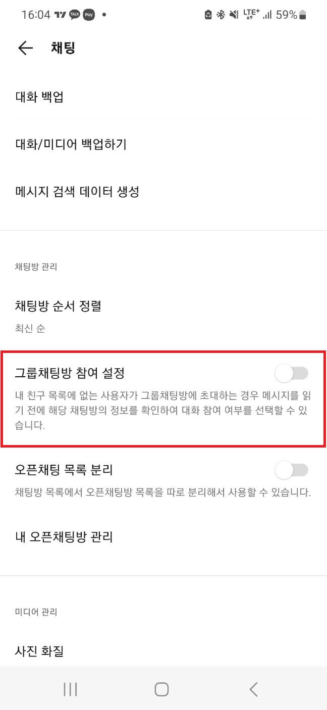 - [그룹채팅방 참여 설정]을 활성화